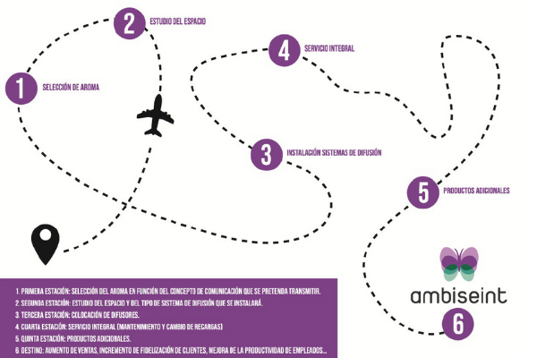 ¿Cuál es el viaje que sigue el aroma corporativo desde su concepción hasta la instalación en los establecimientos?