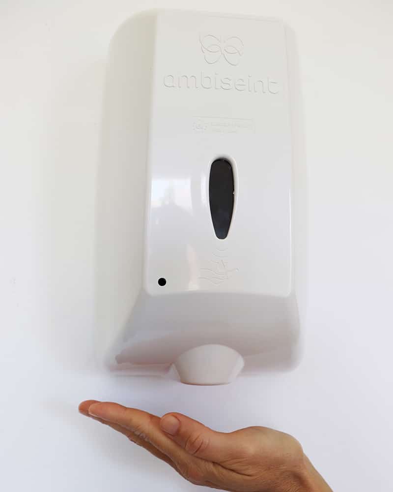 Dosificador automático de accionamiento con fotocélula. Apto para soluciones hidroalcohólicas, líquidas y en gel, además de para jabón líquido.